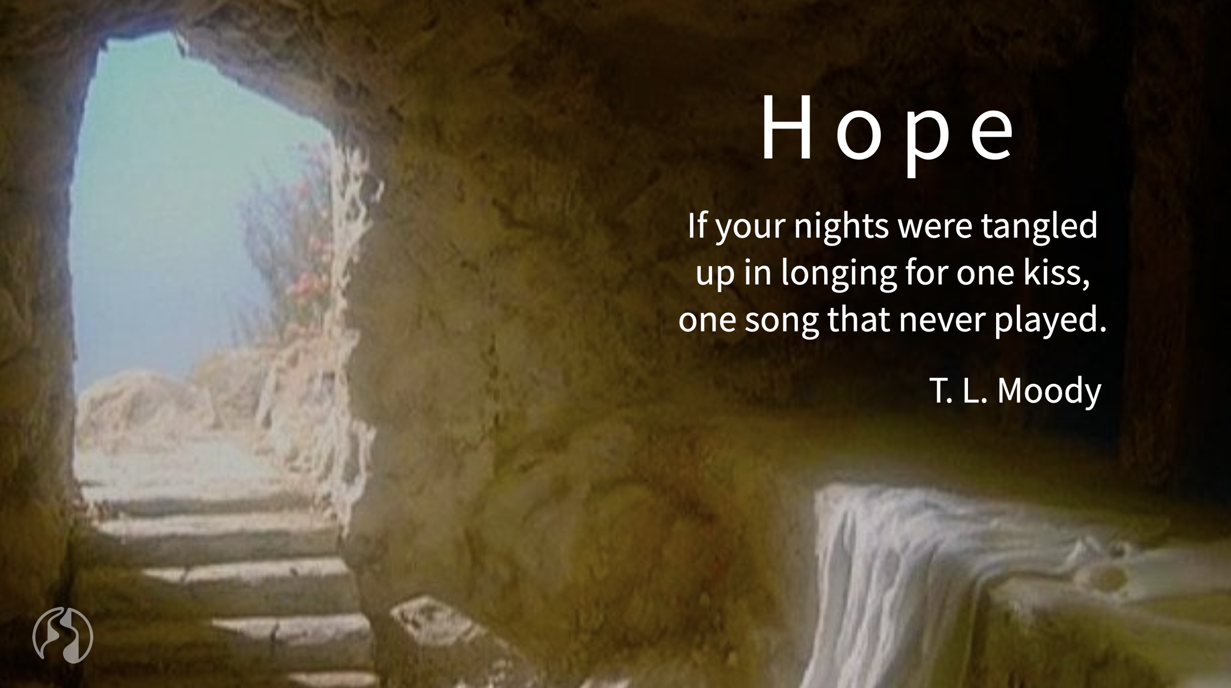 Editor’s comment: Hymn writer, T. L. Moody, was cautioned by a publisher of sacred music to consider removing this line from the piece before submission for publication consideration. When asked by the publisher to explain this line, and especially the meaning of “the kiss” and “the song,” Moody replied: